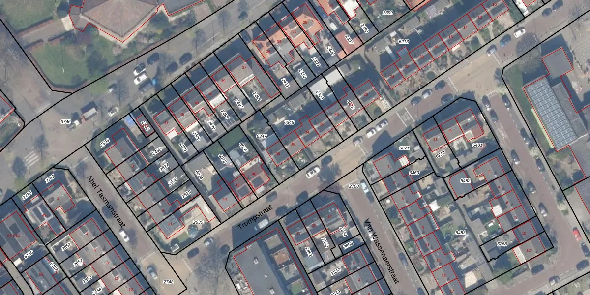 Trompstraat 36 is gelegen op kadastraal perceel NWK01F6346. Deze kadastrale aanduiding is uniek en wordt gebruikt door het Kadaster om eigendomsrechten en andere zakelijke rechten vast te leggen. Het perceel maakt onderdeel uit van de kadastrale gemeente Naaldwijk.
