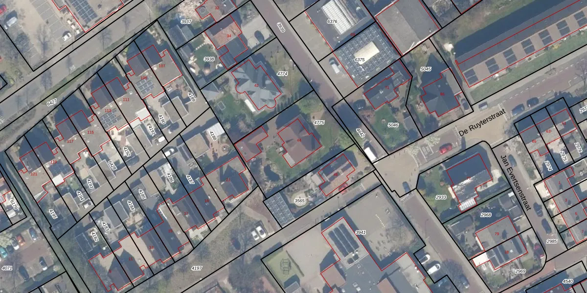 Gebruik de zoekbalk of klik op een perceel voor informatie over de adressen binnen dit perceel.