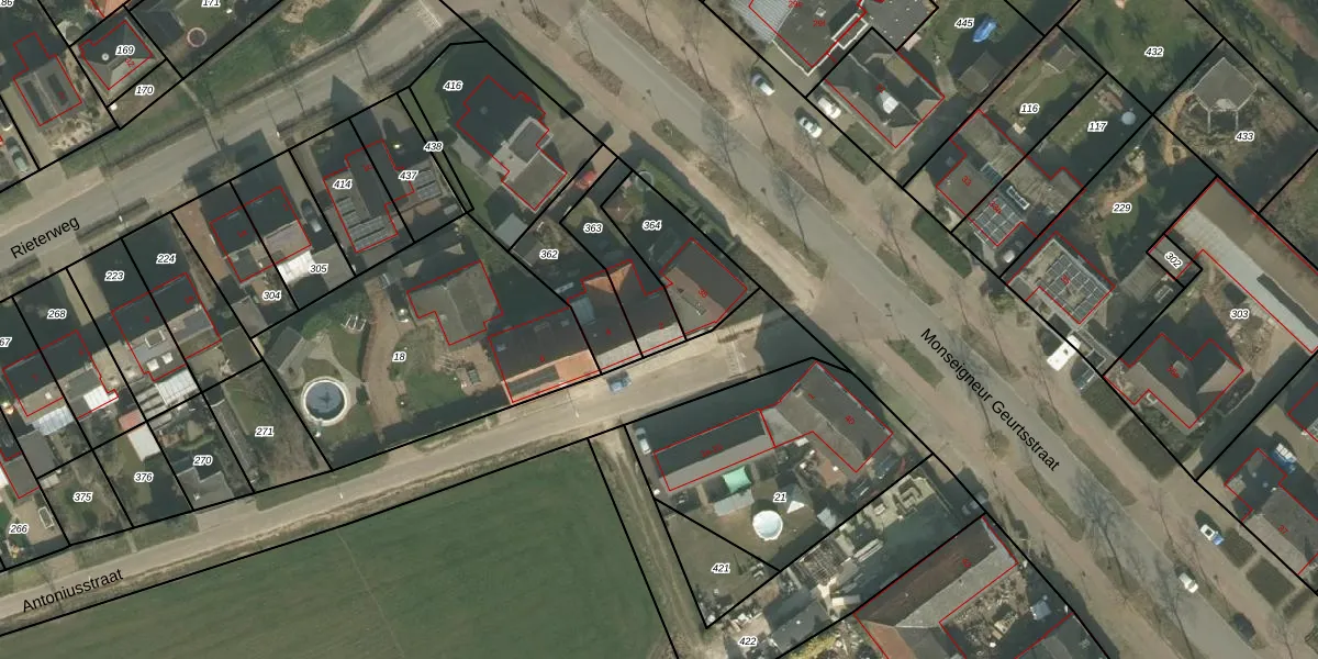 Antoniusstraat 2 is gelegen op kadastraal perceel VLB00H363. Deze kadastrale aanduiding is uniek en wordt gebruikt door het Kadaster om eigendomsrechten en andere zakelijke rechten vast te leggen. Het perceel maakt onderdeel uit van de kadastrale gemeente Vierlingsbeek.