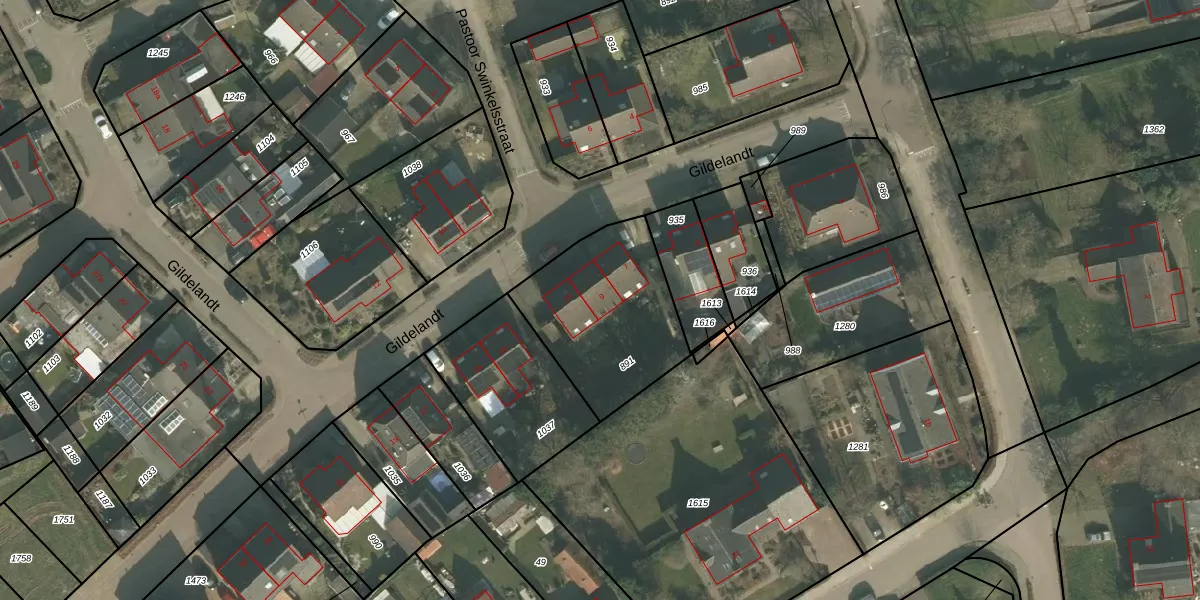 Gildelandt 9 is gelegen op kadastraal perceel VLB00G891. Deze kadastrale aanduiding is uniek en wordt gebruikt door het Kadaster om eigendomsrechten en andere zakelijke rechten vast te leggen. Het perceel maakt onderdeel uit van de kadastrale gemeente Vierlingsbeek.