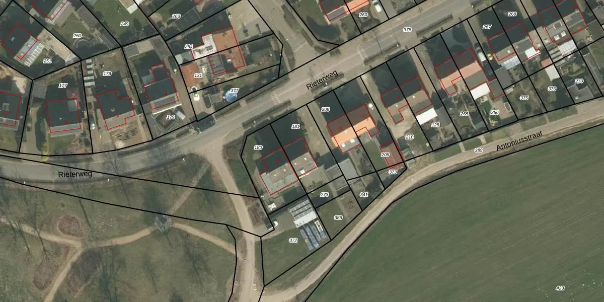 Het perceel waarop Rieterweg 21 staat heeft een oppervlakte van 362 m². Dit is een groot perceel. De perceeloppervlakte wordt geregistreerd door het Kadaster. Gedetailleerde informatie over de maten van dit perceel kunt u vinden in het rapport Kadastrale kaart met maatvoering van Rieterweg 21.