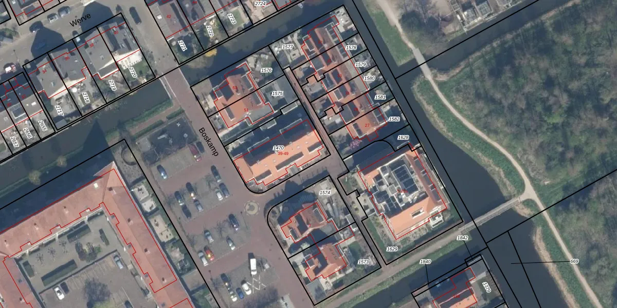 Het perceel waarop Boskamp 41 staat heeft een oppervlakte van 560 m². Dit is een groot perceel. De perceeloppervlakte wordt geregistreerd door het Kadaster. Gedetailleerde informatie over de maten van dit perceel kunt u vinden in het rapport Kadastrale kaart met maatvoering van Boskamp 41.