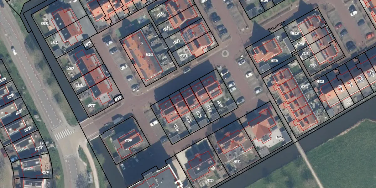 Gebruik de zoekbalk of klik op een perceel voor informatie over de adressen binnen dit perceel.