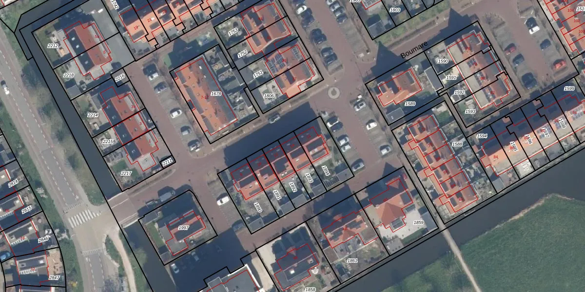 Gebruik de zoekbalk of klik op een perceel voor informatie over de adressen binnen dit perceel.