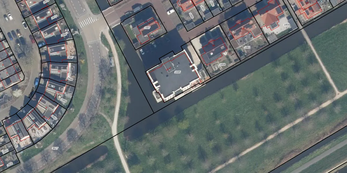 Het perceel waarop Boumare 24 staat heeft een oppervlakte van 695 m². Dit is een groot perceel. De perceeloppervlakte wordt geregistreerd door het Kadaster. Gedetailleerde informatie over de maten van dit perceel kunt u vinden in het rapport Kadastrale kaart met maatvoering van Boumare 24.