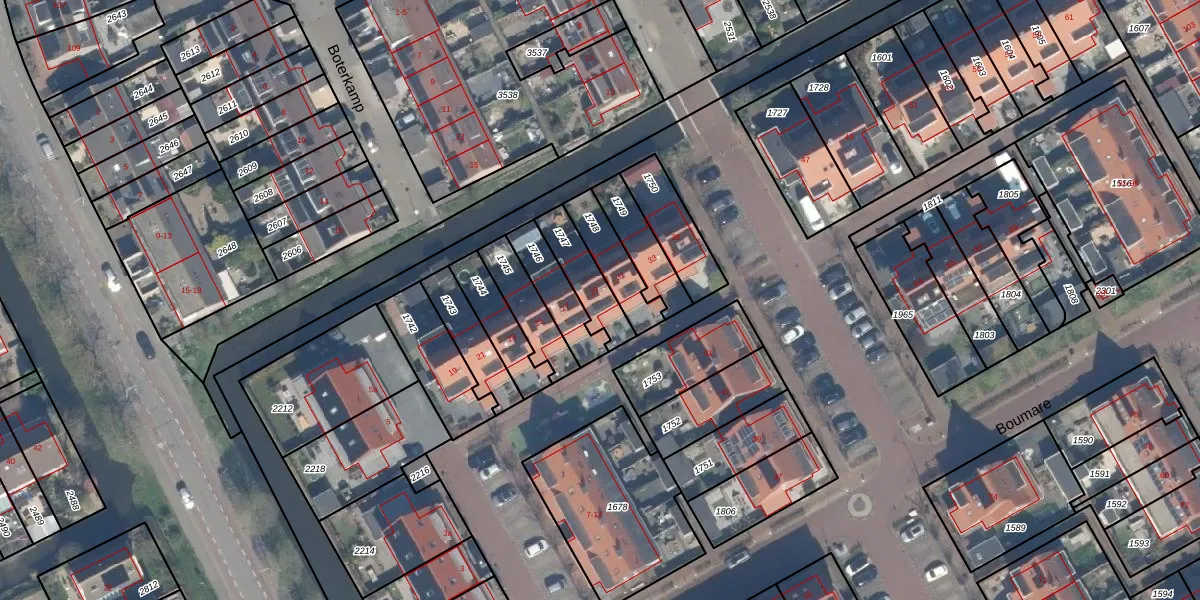 Gebruik de zoekbalk of klik op een perceel voor informatie over de adressen binnen dit perceel.