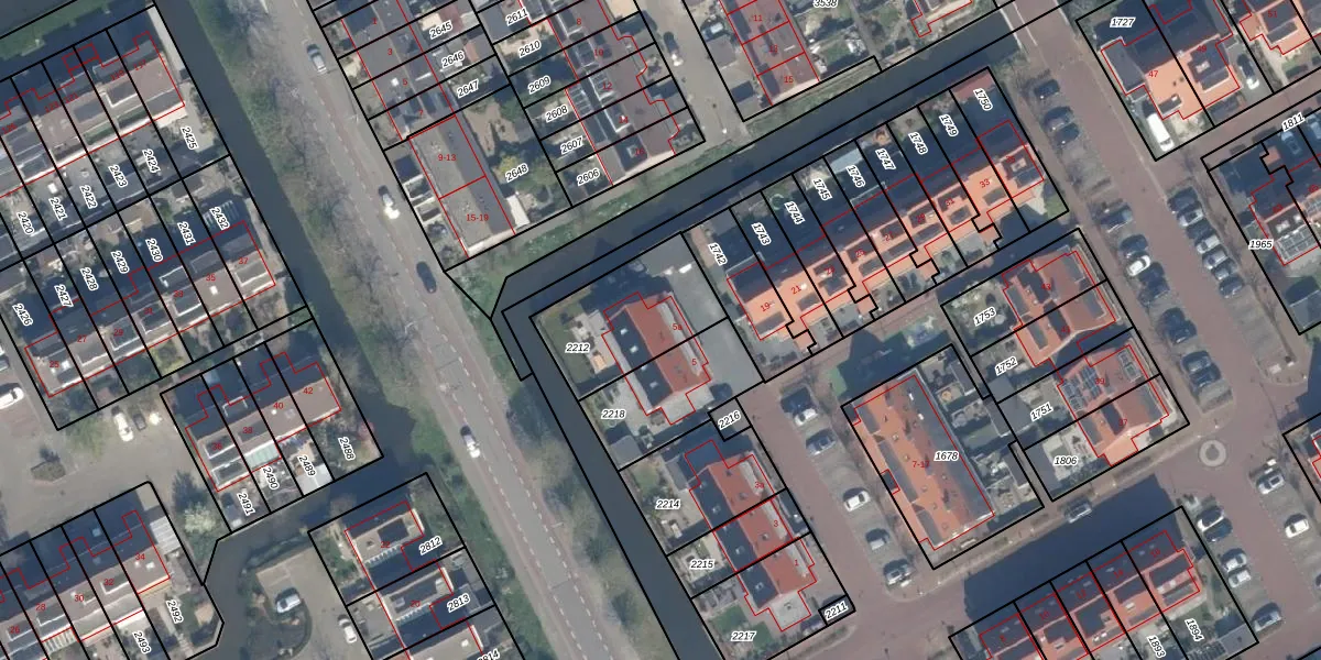 Gebruik de zoekbalk of klik op een perceel voor informatie over de adressen binnen dit perceel.