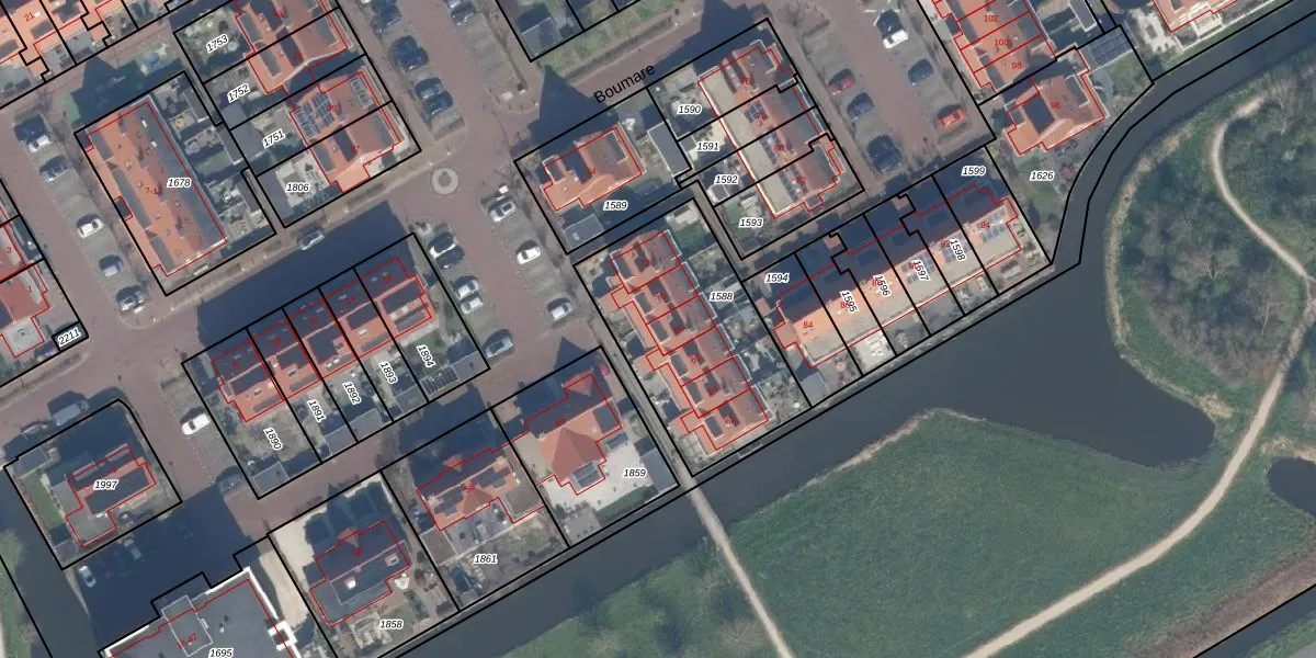 Boumare 68 is gelegen op kadastraal perceel MLD00I1588. Deze kadastrale aanduiding is uniek en wordt gebruikt door het Kadaster om eigendomsrechten en andere zakelijke rechten vast te leggen. Het perceel maakt onderdeel uit van de kadastrale gemeente Maasland.
