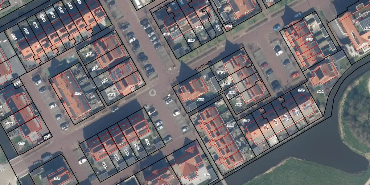 Boumare 74 is gelegen op kadastraal perceel MLD00I1589. Deze kadastrale aanduiding is uniek en wordt gebruikt door het Kadaster om eigendomsrechten en andere zakelijke rechten vast te leggen. Het perceel maakt onderdeel uit van de kadastrale gemeente Maasland.
