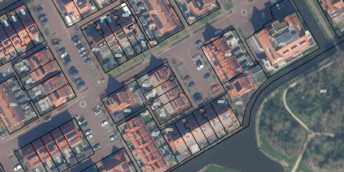 Gebruik de zoekbalk of klik op een perceel voor informatie over de adressen binnen dit perceel.