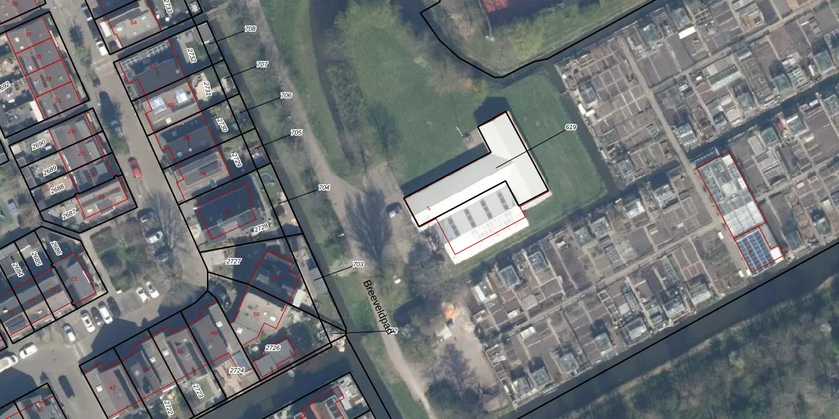 Breeveldpad 1 is gelegen op kadastraal perceel MLD00I619. Deze kadastrale aanduiding is uniek en wordt gebruikt door het Kadaster om eigendomsrechten en andere zakelijke rechten vast te leggen. Het perceel maakt onderdeel uit van de kadastrale gemeente Maasland.