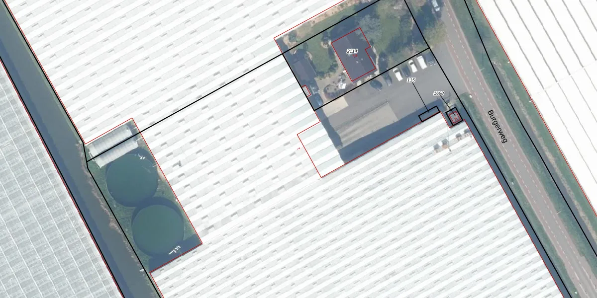 Het perceel waarop Burgerweg 7 staat heeft een oppervlakte van 2,4 ha. Dit is een zeer groot perceel. De perceeloppervlakte wordt geregistreerd door het Kadaster. Gedetailleerde informatie over de maten van dit perceel kunt u vinden in het rapport Kadastrale kaart met maatvoering van Burgerweg 7.