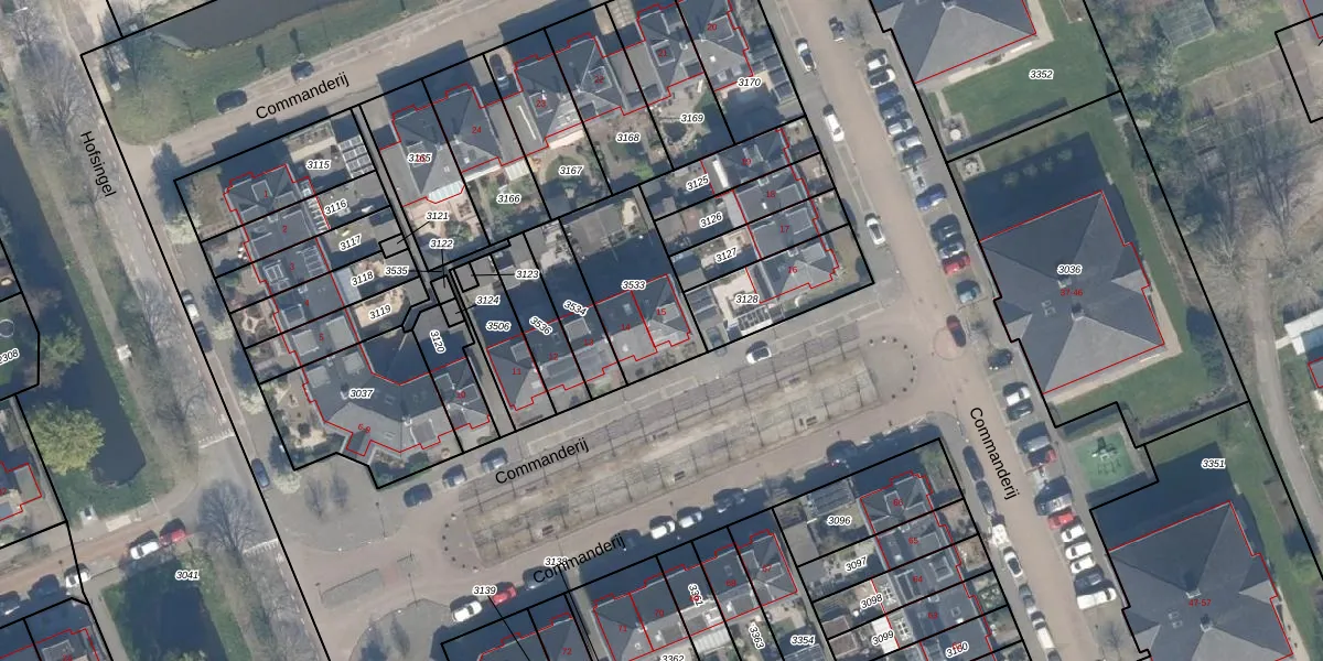 Het perceel waarop Commanderij 15 staat heeft een oppervlakte van 360 m². Dit is een groot perceel. De perceeloppervlakte wordt geregistreerd door het Kadaster. Gedetailleerde informatie over de maten van dit perceel kunt u vinden in het rapport Kadastrale kaart met maatvoering van Commanderij 15.