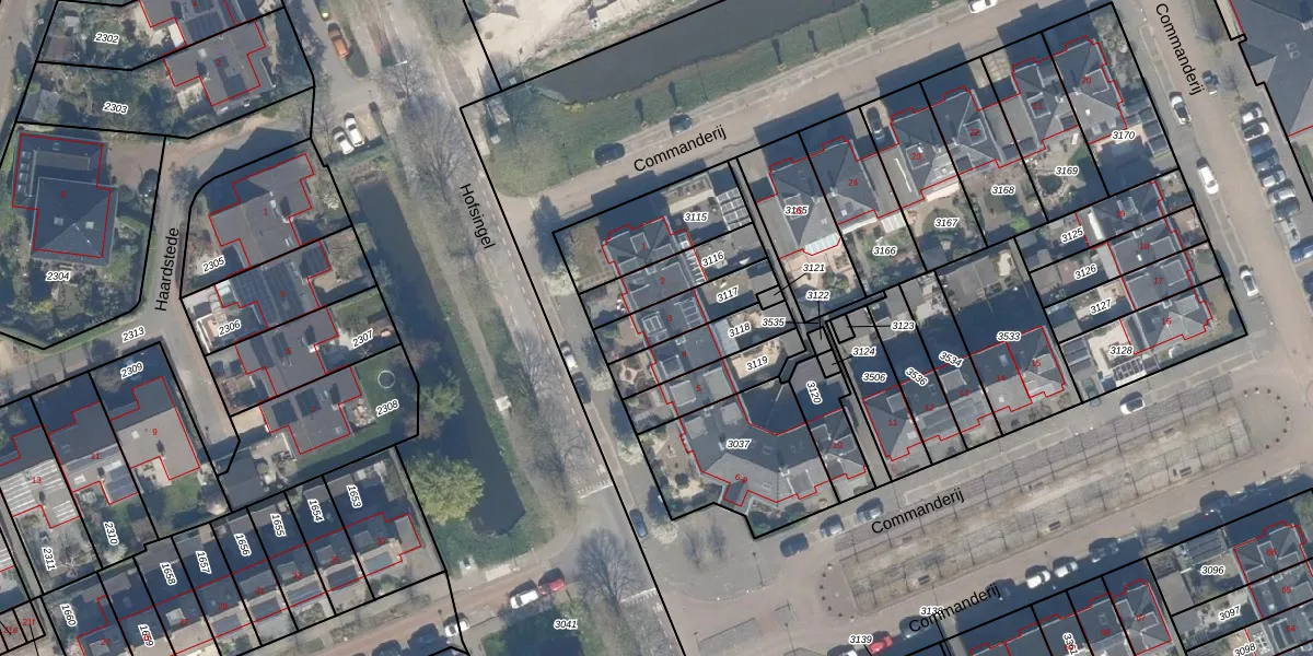 Het perceel waarop Commanderij 3 staat heeft een oppervlakte van 162 m². Dit is een middelgroot perceel. De perceeloppervlakte wordt geregistreerd door het Kadaster. Gedetailleerde informatie over de maten van dit perceel kunt u vinden in het rapport Kadastrale kaart met maatvoering van Commanderij 3.