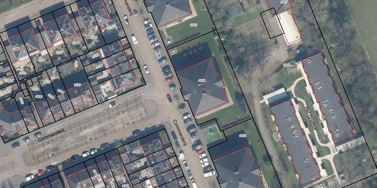Het perceel waarop Commanderij 41 staat heeft een oppervlakte van 1388 m². Dit is een zeer groot perceel. De perceeloppervlakte wordt geregistreerd door het Kadaster. Gedetailleerde informatie over de maten van dit perceel kunt u vinden in het rapport Kadastrale kaart met maatvoering van Commanderij 41.