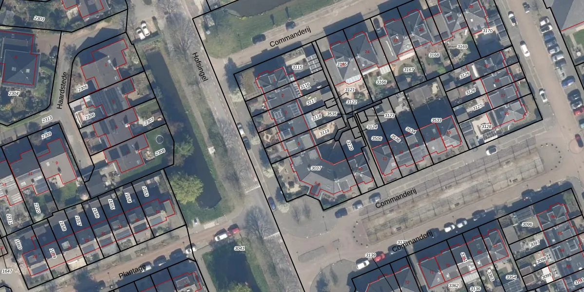 Het perceel waarop Commanderij 5 staat heeft een oppervlakte van 158 m². Dit is een middelgroot perceel. De perceeloppervlakte wordt geregistreerd door het Kadaster. Gedetailleerde informatie over de maten van dit perceel kunt u vinden in het rapport Kadastrale kaart met maatvoering van Commanderij 5.