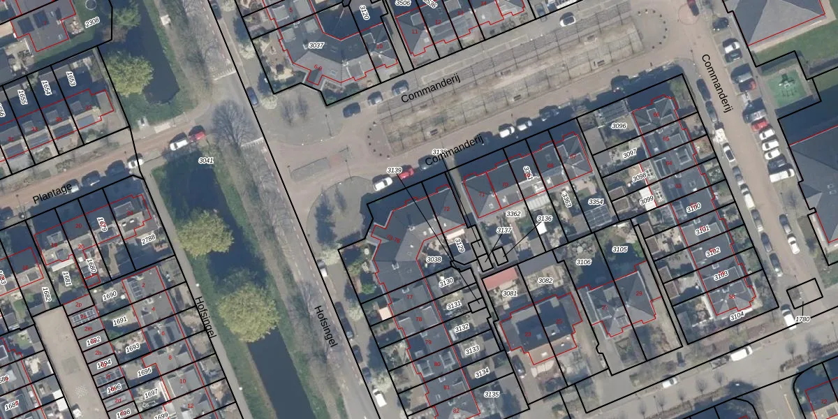 Het perceel waarop Commanderij 73 staat heeft een oppervlakte van 448 m². Dit is een groot perceel. De perceeloppervlakte wordt geregistreerd door het Kadaster. Gedetailleerde informatie over de maten van dit perceel kunt u vinden in het rapport Kadastrale kaart met maatvoering van Commanderij 73.