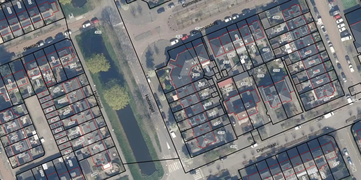 Het perceel waarop Commanderij 77 staat heeft een oppervlakte van 153 m². Dit is een middelgroot perceel. De perceeloppervlakte wordt geregistreerd door het Kadaster. Gedetailleerde informatie over de maten van dit perceel kunt u vinden in het rapport Kadastrale kaart met maatvoering van Commanderij 77.