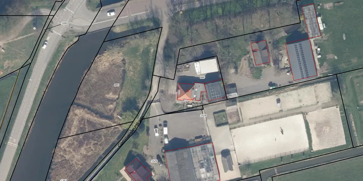 Het perceel waarop Commandeurskade 48 staat heeft een oppervlakte van 969 m². Dit is een groot perceel. De perceeloppervlakte wordt geregistreerd door het Kadaster. Gedetailleerde informatie over de maten van dit perceel kunt u vinden in het rapport Kadastrale kaart met maatvoering van Commandeurskade 48.