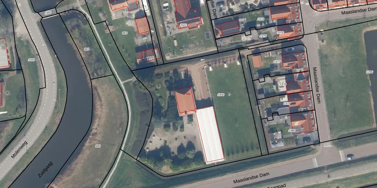 Het adres ligt op het perceel MLD00-I-1830, dat zich in de kadastrale gemeente Maasland bevindt. De gemiddelde perceelgrootte in Maasland is 5023,78 m². Dit perceel is kleiner: de perceeloppervlakte bedraagt 3295 m². De grootste perceeloppervlakte in de kadastrale gemeente is 45,4 ha. De kleinste oppervlakte bedraagt 0 m². Dit is het enige adres dat aanwezig is op het perceel. De laatste wijziging in het de Basisregistratie Kadaster (BRK) was op 03-04-2020.