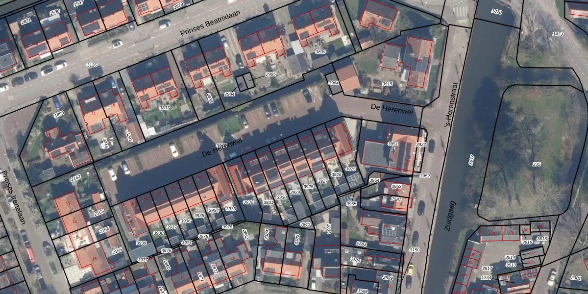 Gebruik de zoekbalk of klik op een perceel voor informatie over de adressen binnen dit perceel.