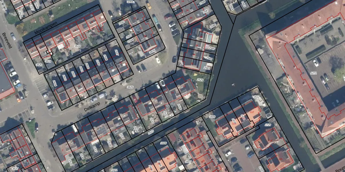 Gebruik de zoekbalk of klik op een perceel voor informatie over de adressen binnen dit perceel.