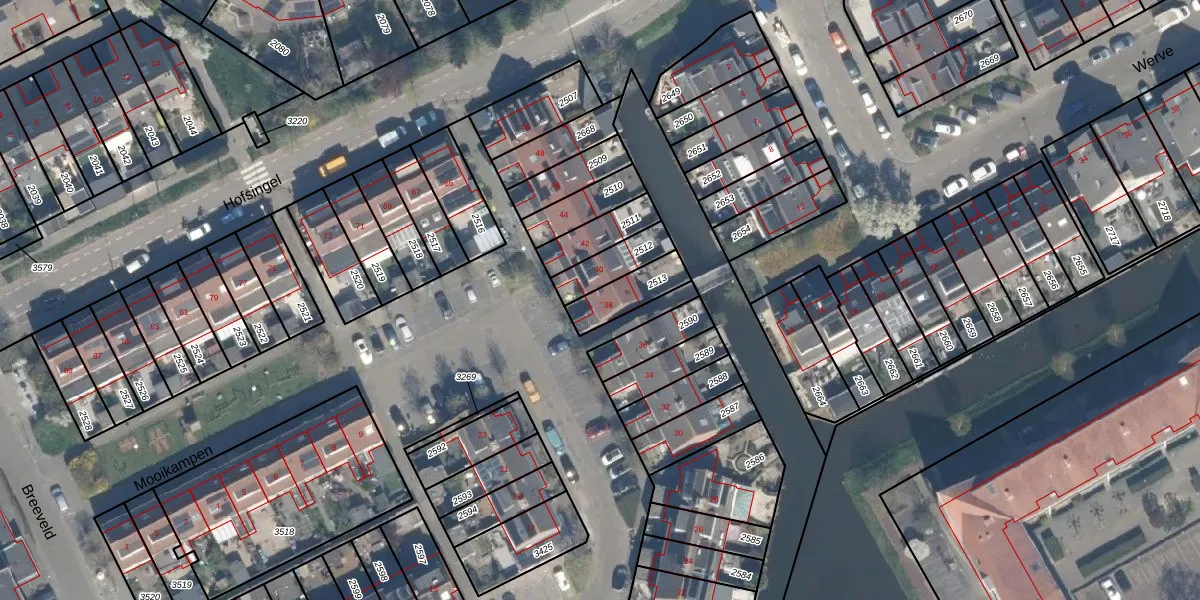 Gebruik de zoekbalk of klik op een perceel voor informatie over de adressen binnen dit perceel.