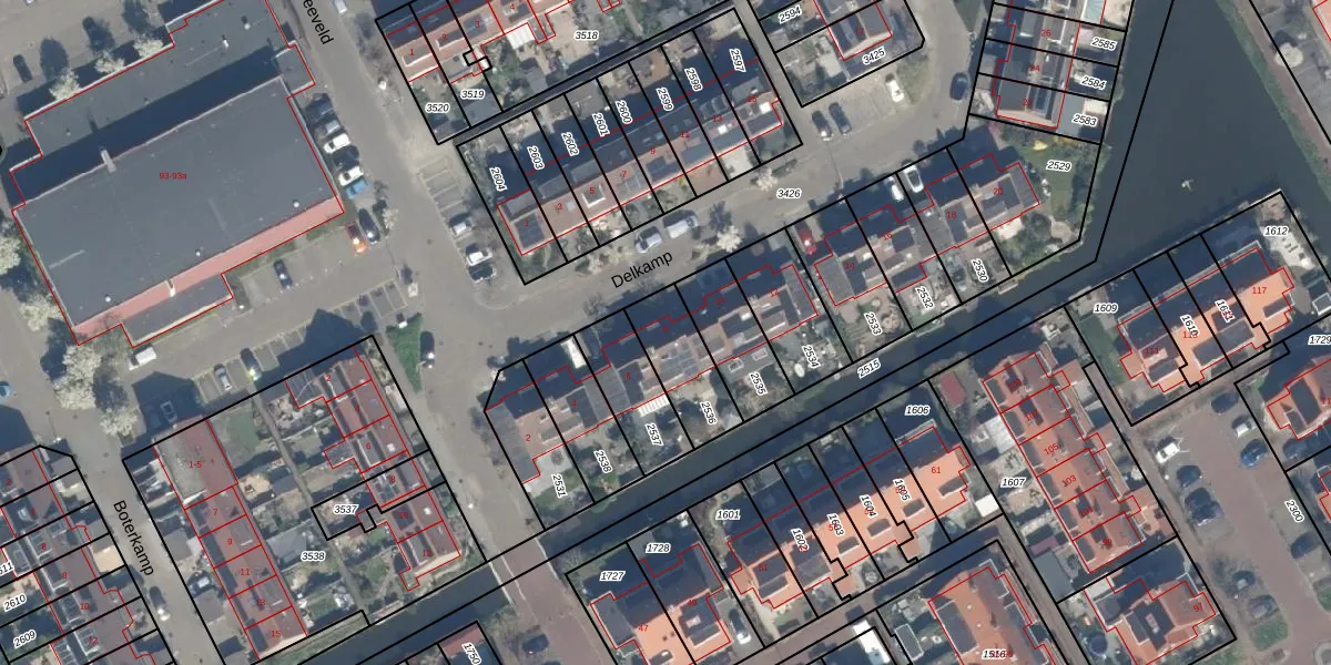 Het perceel waarop Delkamp 8 staat heeft een oppervlakte van 202 m². Dit is een middelgroot perceel. De perceeloppervlakte wordt geregistreerd door het Kadaster. Gedetailleerde informatie over de maten van dit perceel kunt u vinden in het rapport Kadastrale kaart met maatvoering van Delkamp 8.