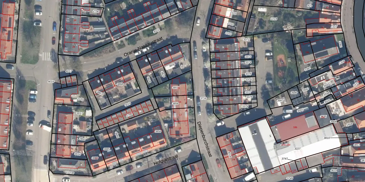 Gebruik de zoekbalk of klik op een perceel voor informatie over de adressen binnen dit perceel.