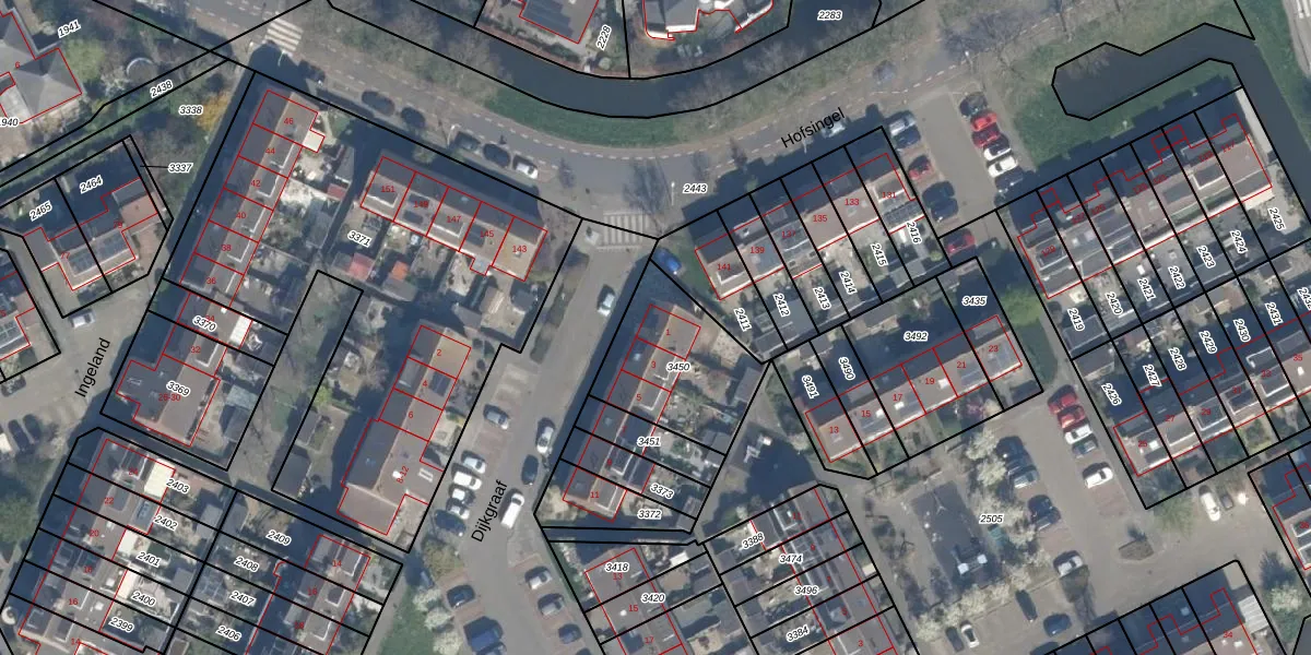 Het perceel waarop Dijkgraaf 1 staat heeft een oppervlakte van 437 m². Dit is een groot perceel. De perceeloppervlakte wordt geregistreerd door het Kadaster. Gedetailleerde informatie over de maten van dit perceel kunt u vinden in het rapport Kadastrale kaart met maatvoering van Dijkgraaf 1.