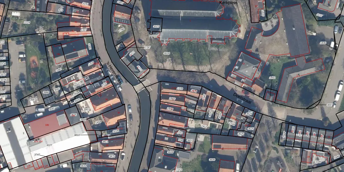 Gebruik de zoekbalk of klik op een perceel voor informatie over de adressen binnen dit perceel.