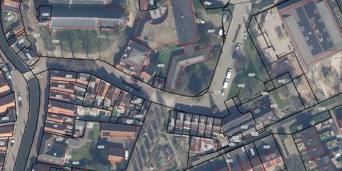 Het perceel waarop Doelstraat 3 staat heeft een oppervlakte van 6200 m². Dit is een zeer groot perceel. De perceeloppervlakte wordt geregistreerd door het Kadaster. Gedetailleerde informatie over de maten van dit perceel kunt u vinden in het rapport Kadastrale kaart met maatvoering van Doelstraat 3.