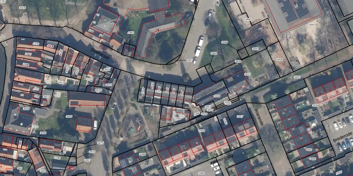 Het perceel waarop Doelstraat 34 staat heeft een oppervlakte van 58 m². Dit is een klein perceel. De perceeloppervlakte wordt geregistreerd door het Kadaster. Gedetailleerde informatie over de maten van dit perceel kunt u vinden in het rapport Kadastrale kaart met maatvoering van Doelstraat 34.