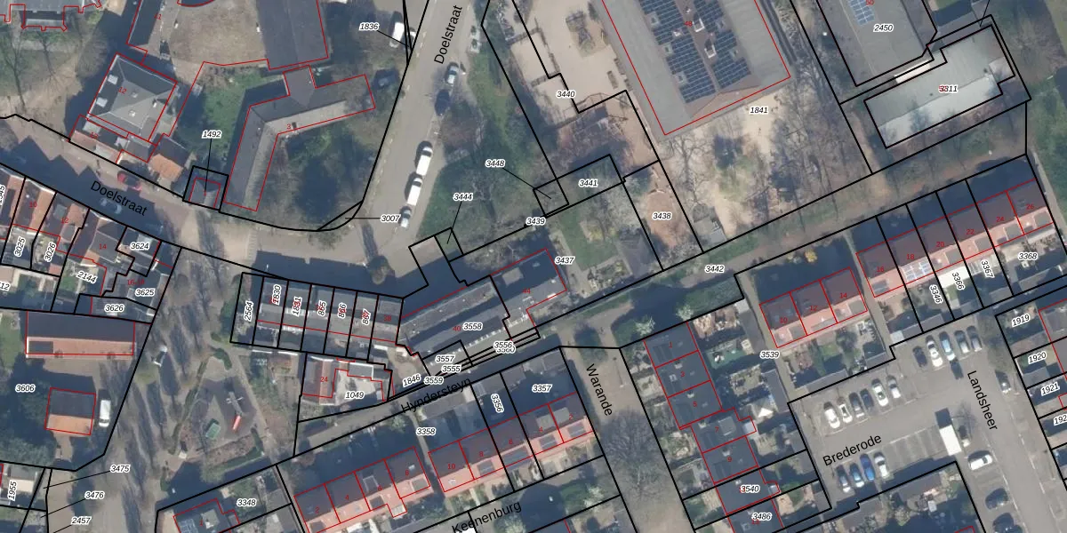 Het perceel waarop Doelstraat 44 staat heeft een oppervlakte van 575 m². Dit is een groot perceel. De perceeloppervlakte wordt geregistreerd door het Kadaster. Gedetailleerde informatie over de maten van dit perceel kunt u vinden in het rapport Kadastrale kaart met maatvoering van Doelstraat 44.