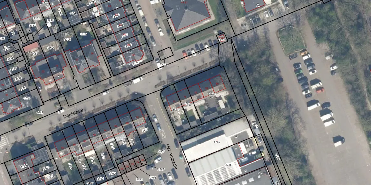 Het perceel waarop Doelstraat 74 staat heeft een oppervlakte van 163 m². Dit is een middelgroot perceel. De perceeloppervlakte wordt geregistreerd door het Kadaster. Gedetailleerde informatie over de maten van dit perceel kunt u vinden in het rapport Kadastrale kaart met maatvoering van Doelstraat 74.