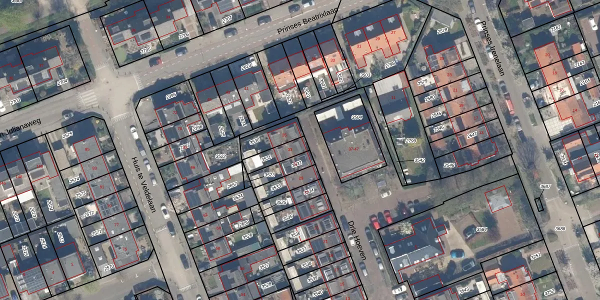 Gebruik de zoekbalk of klik op een perceel voor informatie over de adressen binnen dit perceel.