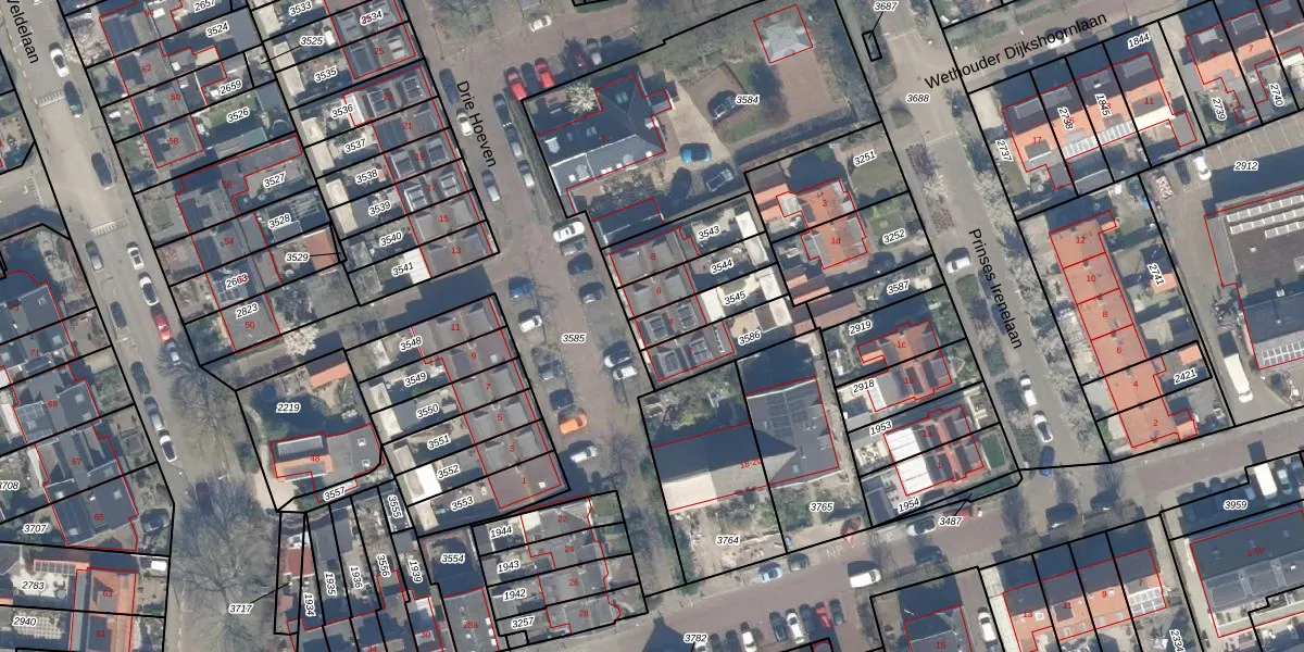 Gebruik de zoekbalk of klik op een perceel voor informatie over de adressen binnen dit perceel.
