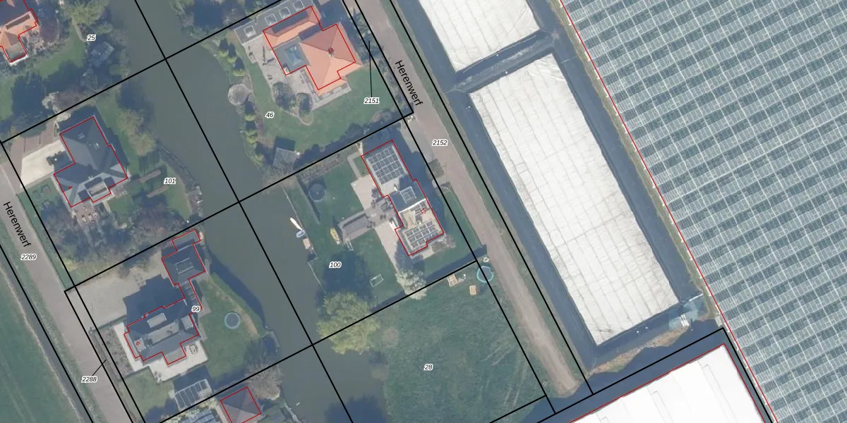 Herenwerf 12 is gelegen op kadastraal perceel MLD00I100. Deze kadastrale aanduiding is uniek en wordt gebruikt door het Kadaster om eigendomsrechten en andere zakelijke rechten vast te leggen. Het perceel maakt onderdeel uit van de kadastrale gemeente Maasland.