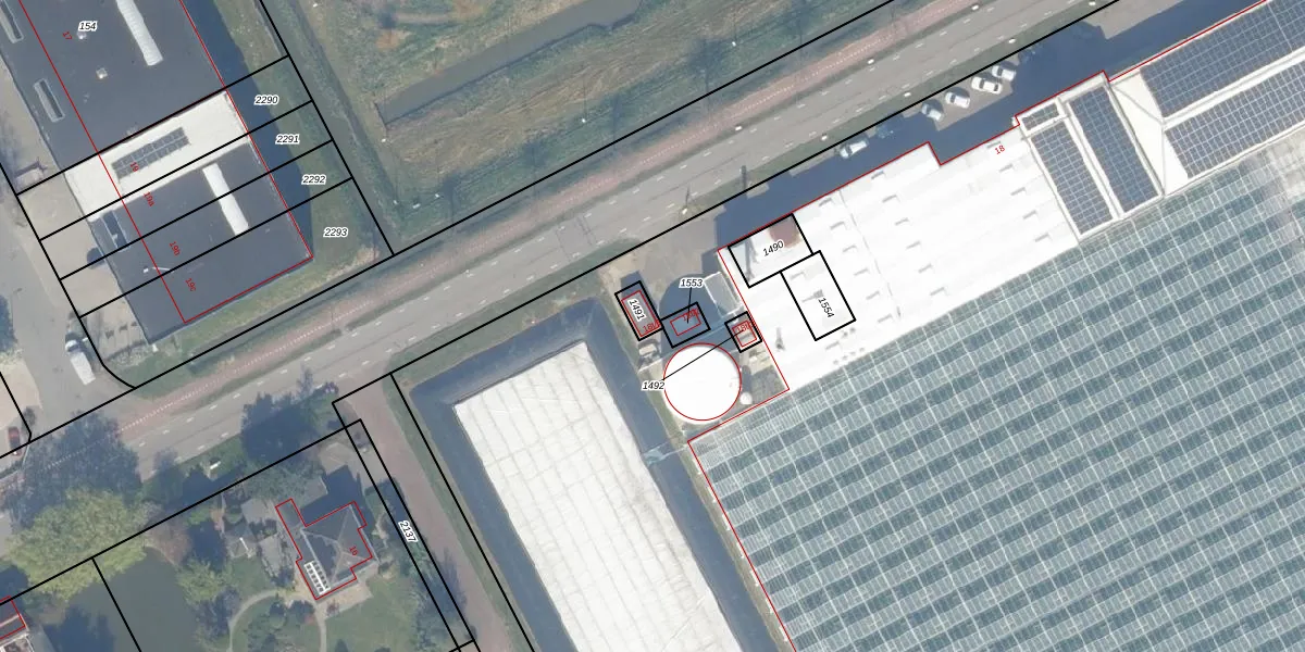 Gebruik de zoekbalk of klik op een perceel voor informatie over de adressen binnen dit perceel.
