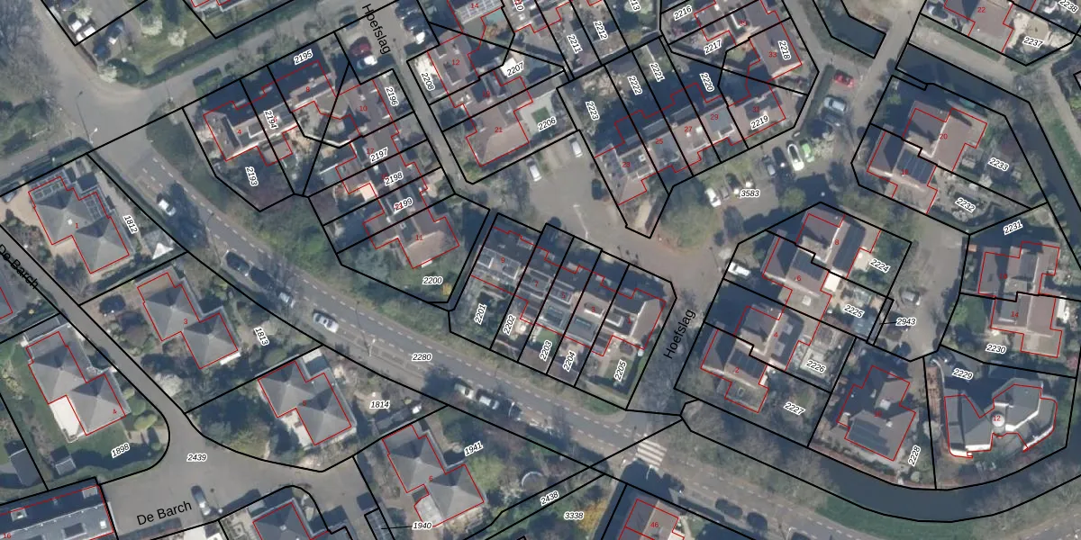 Gebruik de zoekbalk of klik op een perceel voor informatie over de adressen binnen dit perceel.