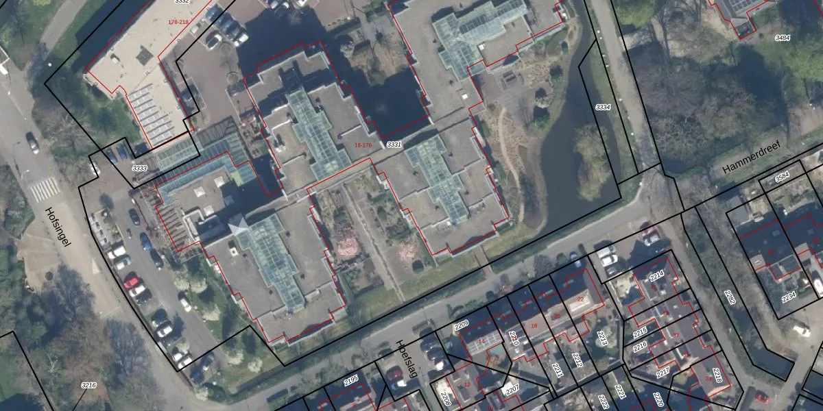 Het perceel waarop Hofsingel 132 staat heeft een oppervlakte van 9214 m². Dit is een zeer groot perceel. De perceeloppervlakte wordt geregistreerd door het Kadaster. Gedetailleerde informatie over de maten van dit perceel kunt u vinden in het rapport Kadastrale kaart met maatvoering van Hofsingel 132.