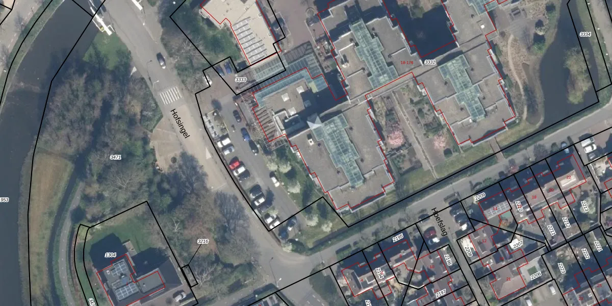 Het perceel waarop Hofsingel 18 staat heeft een oppervlakte van 9214 m². Dit is een zeer groot perceel. De perceeloppervlakte wordt geregistreerd door het Kadaster. Gedetailleerde informatie over de maten van dit perceel kunt u vinden in het rapport Kadastrale kaart met maatvoering van Hofsingel 18.