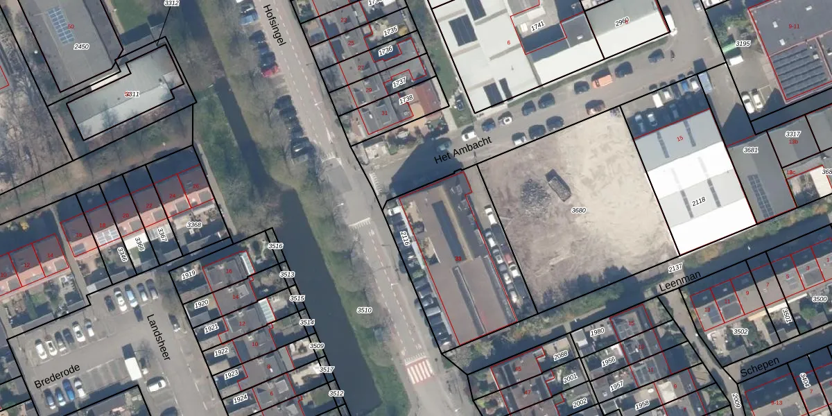 Het perceel waarop Hofsingel 33 staat heeft een oppervlakte van 976 m². Dit is een groot perceel. De perceeloppervlakte wordt geregistreerd door het Kadaster. Gedetailleerde informatie over de maten van dit perceel kunt u vinden in het rapport Kadastrale kaart met maatvoering van Hofsingel 33.