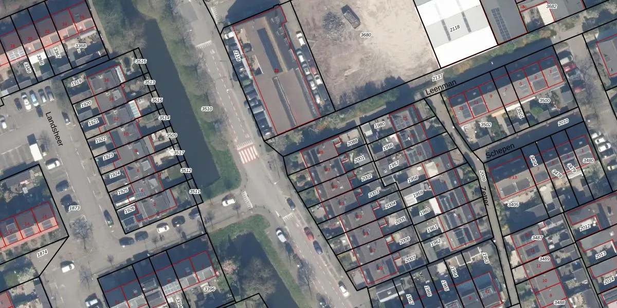 Gebruik de zoekbalk of klik op een perceel voor informatie over de adressen binnen dit perceel.