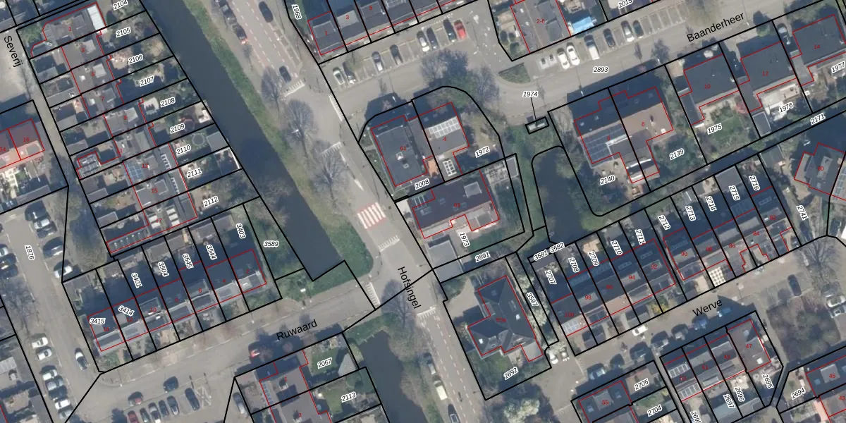 Gebruik de zoekbalk of klik op een perceel voor informatie over de adressen binnen dit perceel.