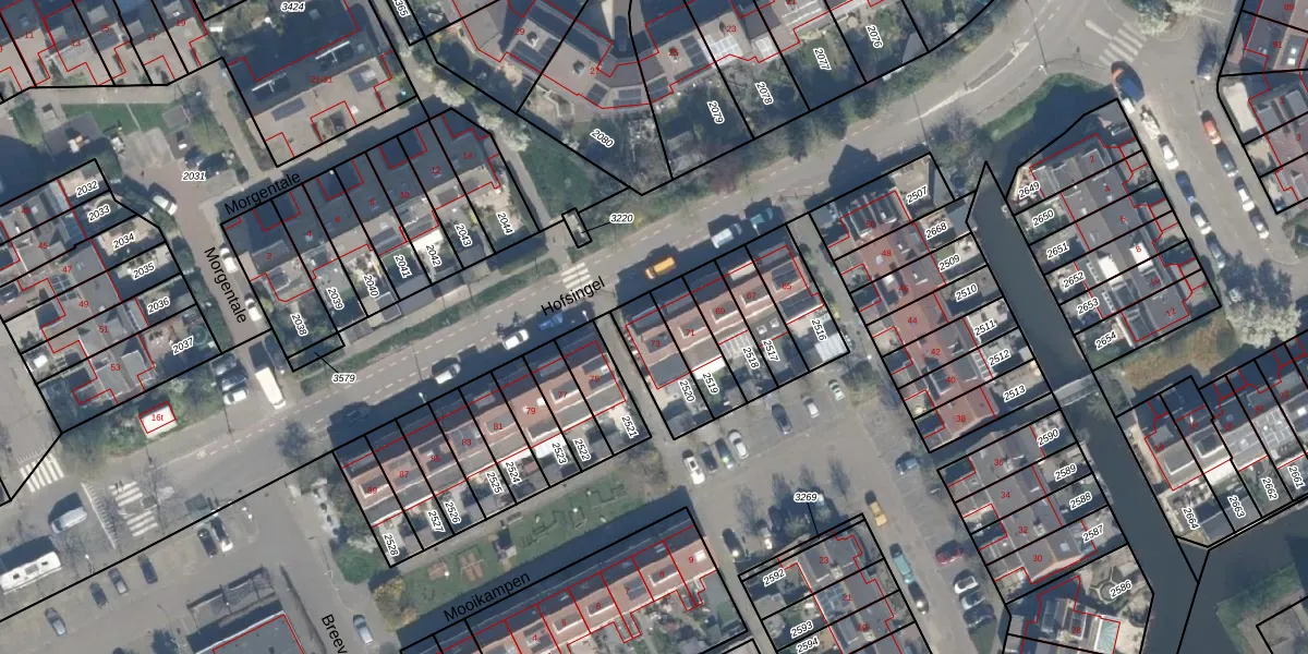Gebruik de zoekbalk of klik op een perceel voor informatie over de adressen binnen dit perceel.