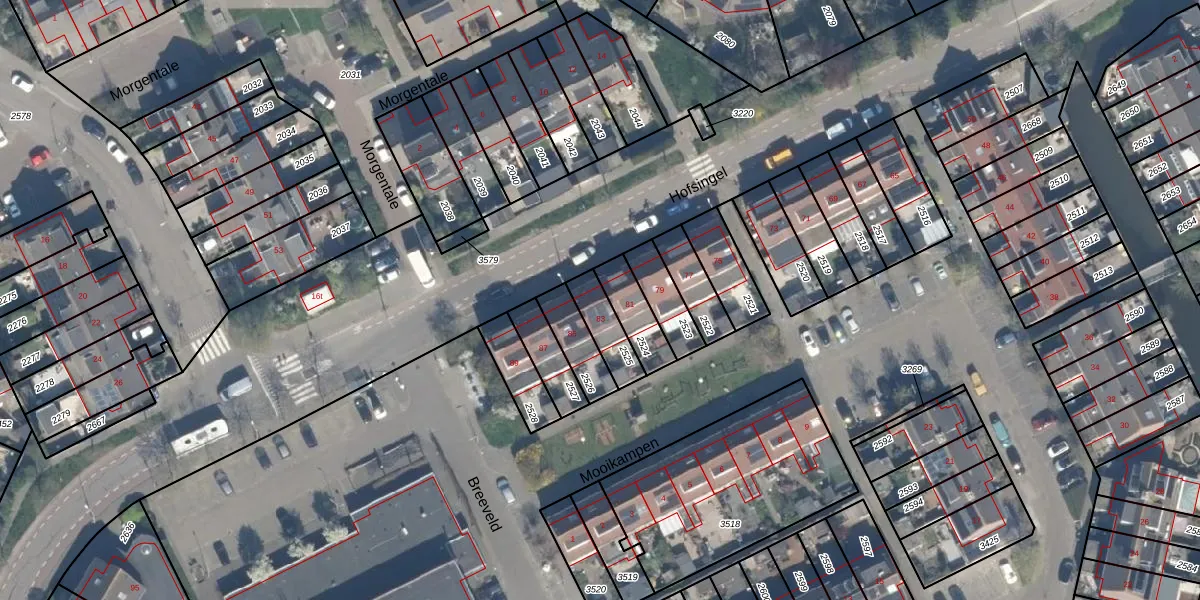 Gebruik de zoekbalk of klik op een perceel voor informatie over de adressen binnen dit perceel.