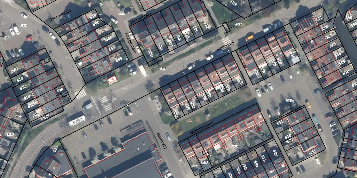 Gebruik de zoekbalk of klik op een perceel voor informatie over de adressen binnen dit perceel.