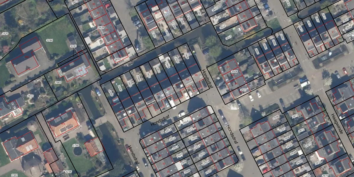 Het perceel waarop Hondsdraf 51 staat heeft een oppervlakte van 175 m². Dit is een middelgroot perceel. De perceeloppervlakte wordt geregistreerd door het Kadaster. Gedetailleerde informatie over de maten van dit perceel kunt u vinden in het rapport Kadastrale kaart met maatvoering van Hondsdraf 51.