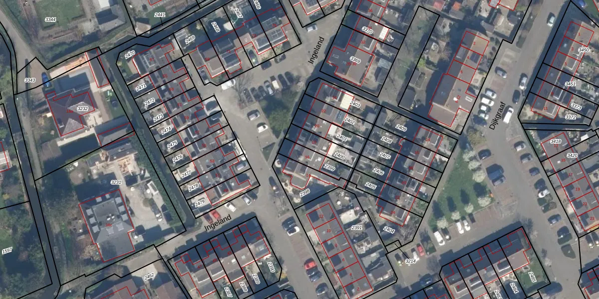 Het perceel waarop Ingeland 16 staat heeft een oppervlakte van 134 m². Dit is een middelgroot perceel. De perceeloppervlakte wordt geregistreerd door het Kadaster. Gedetailleerde informatie over de maten van dit perceel kunt u vinden in het rapport Kadastrale kaart met maatvoering van Ingeland 16.